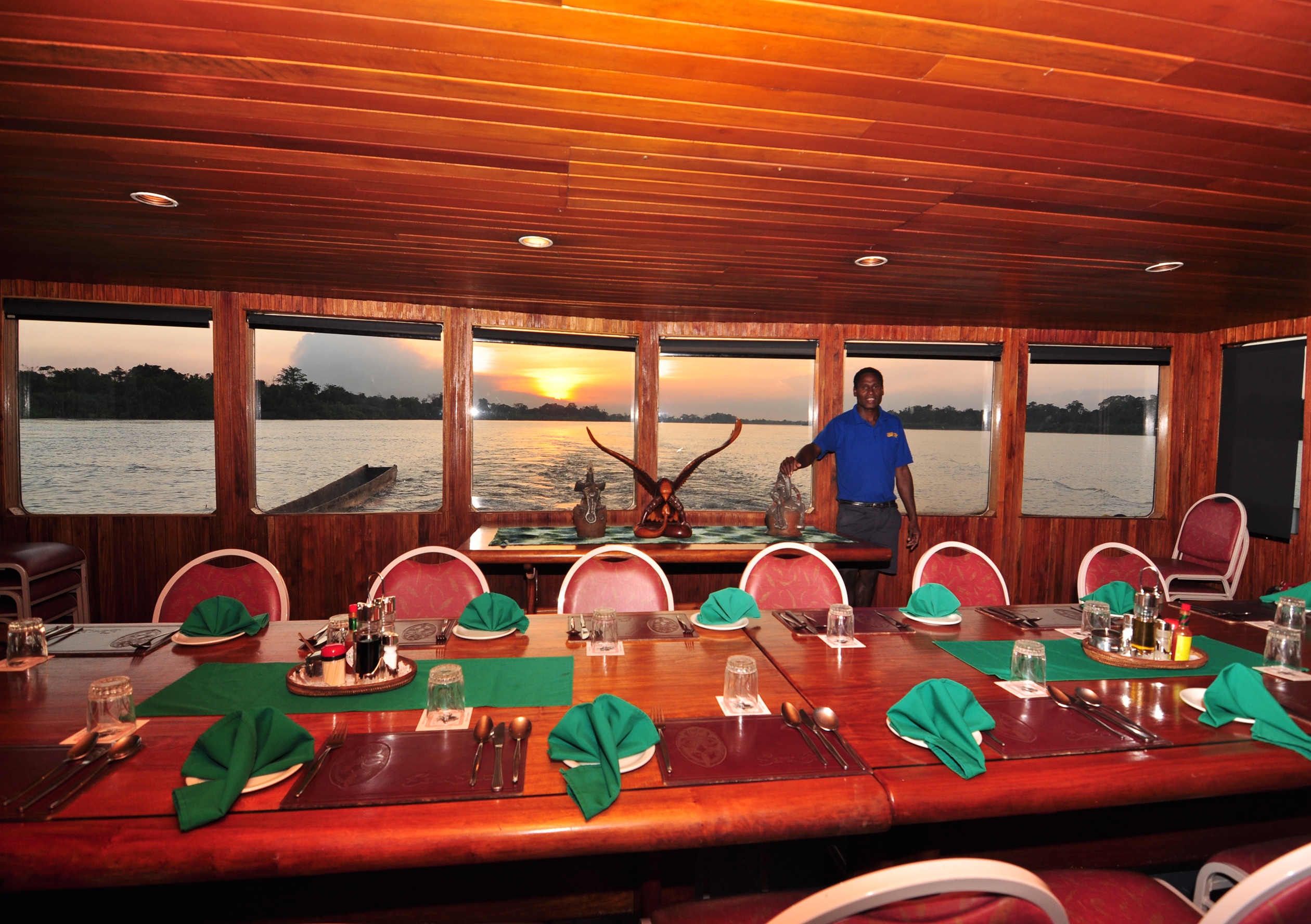 The main lodge building features an airy lounge, dining room and bar area and a large wraparound verandah, making it the perfect place to enjoy exceptional sunsets over the water. Lake Murray Lodge arranges boat excursions around the lake to visit local villages, birding sites and fishing spots. With a rich population of birds, fish and a unique tribal culture, this lodge is an exceptional experience for travellers wishing to experience this remote destination in comfort.