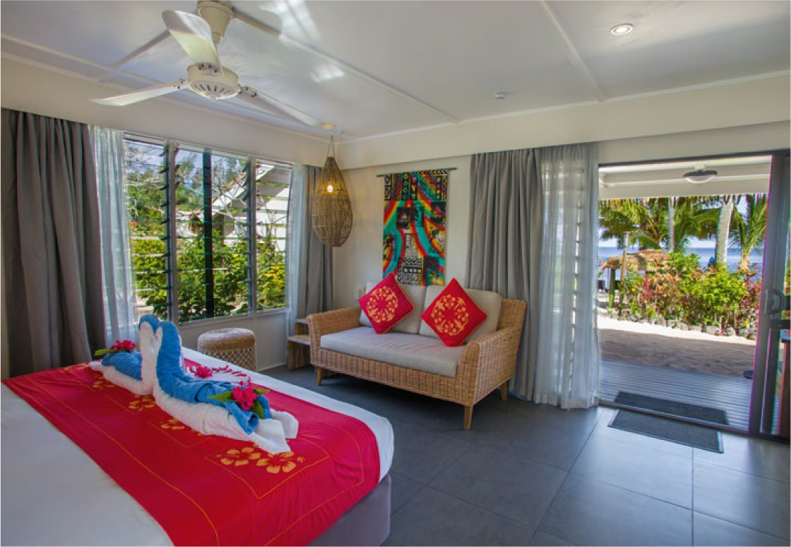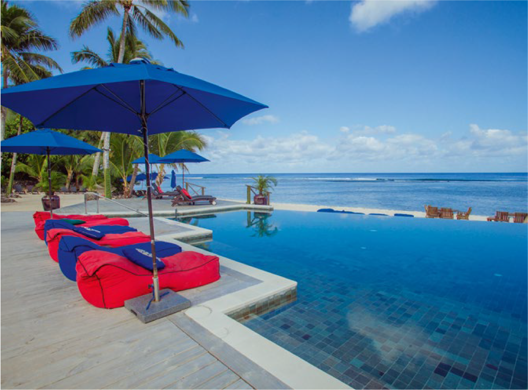 The resort’s 24 ground floor suites feature outdoor showers and Polynesian-inspired décor. The accommodation includes VIP Premium Beachfront Suites and VIP Premium Suites which offer complimentary golf membership to guests at the Rarotonga Golf Club.