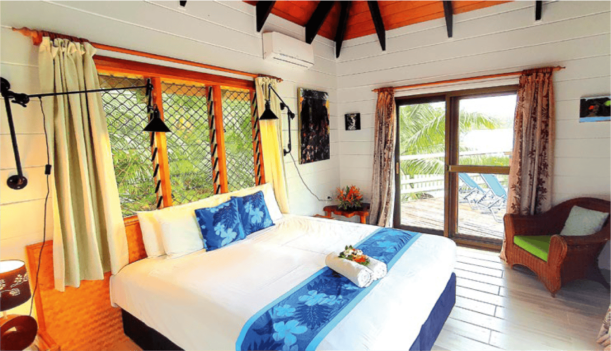 Each villa has a well-appointed kitchenette and four have their own swimming pool. Private spacious timber decks offer stunning views across the turquoise lagoon and the picturesque offshore islands. You will be just a few steps from the tranquil turquoise lagoon where you can snorkel by day and relax with a drink at sunset.
