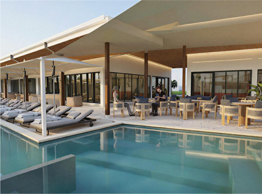 Accommodation will comprise 76 rooms with a mix of one-bedroom and two-bedroom apartments plus threebedroom villas with private plunge pools. All will be fully furnished and self-contained with kitchenette/kitchen facilities and washer/dryer. Convenient on-site facilities will include a café/ bar and all-day dining restaurant.