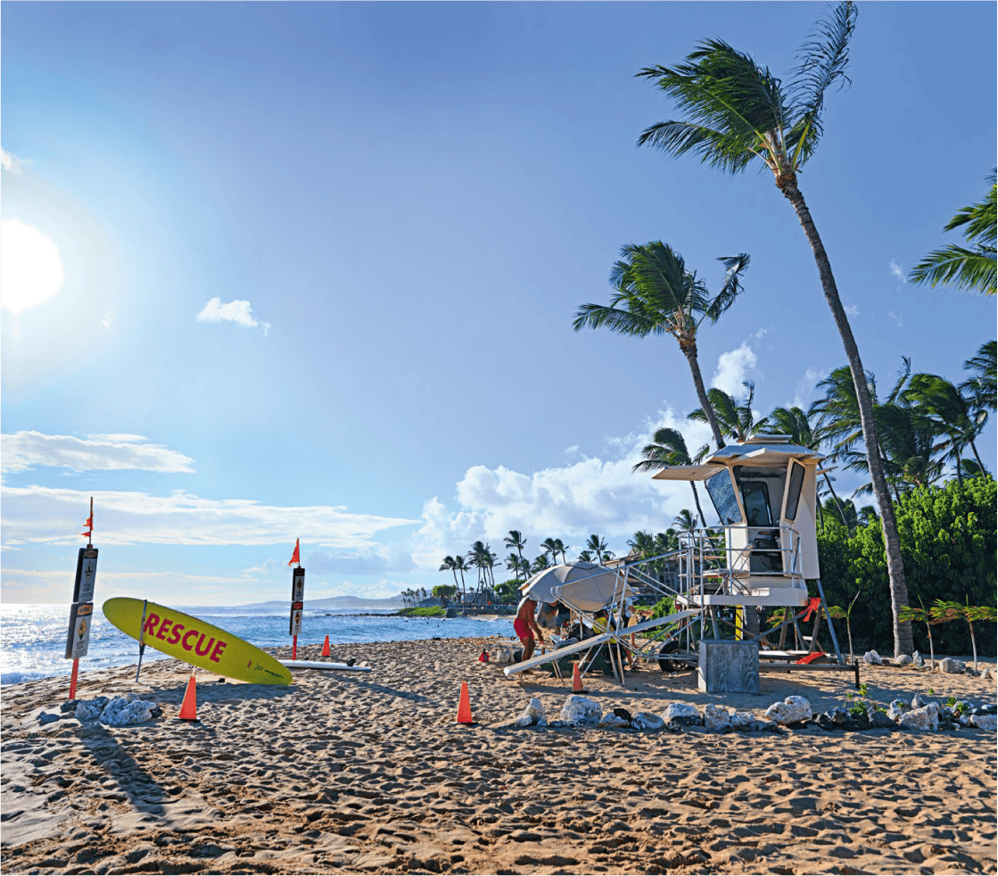 Po`ipu, a leisurely 30 minutes by car south of Lihue, has been called Kauai’s playground, with its pristine beaches protected by a necklace of offshore reefs.
