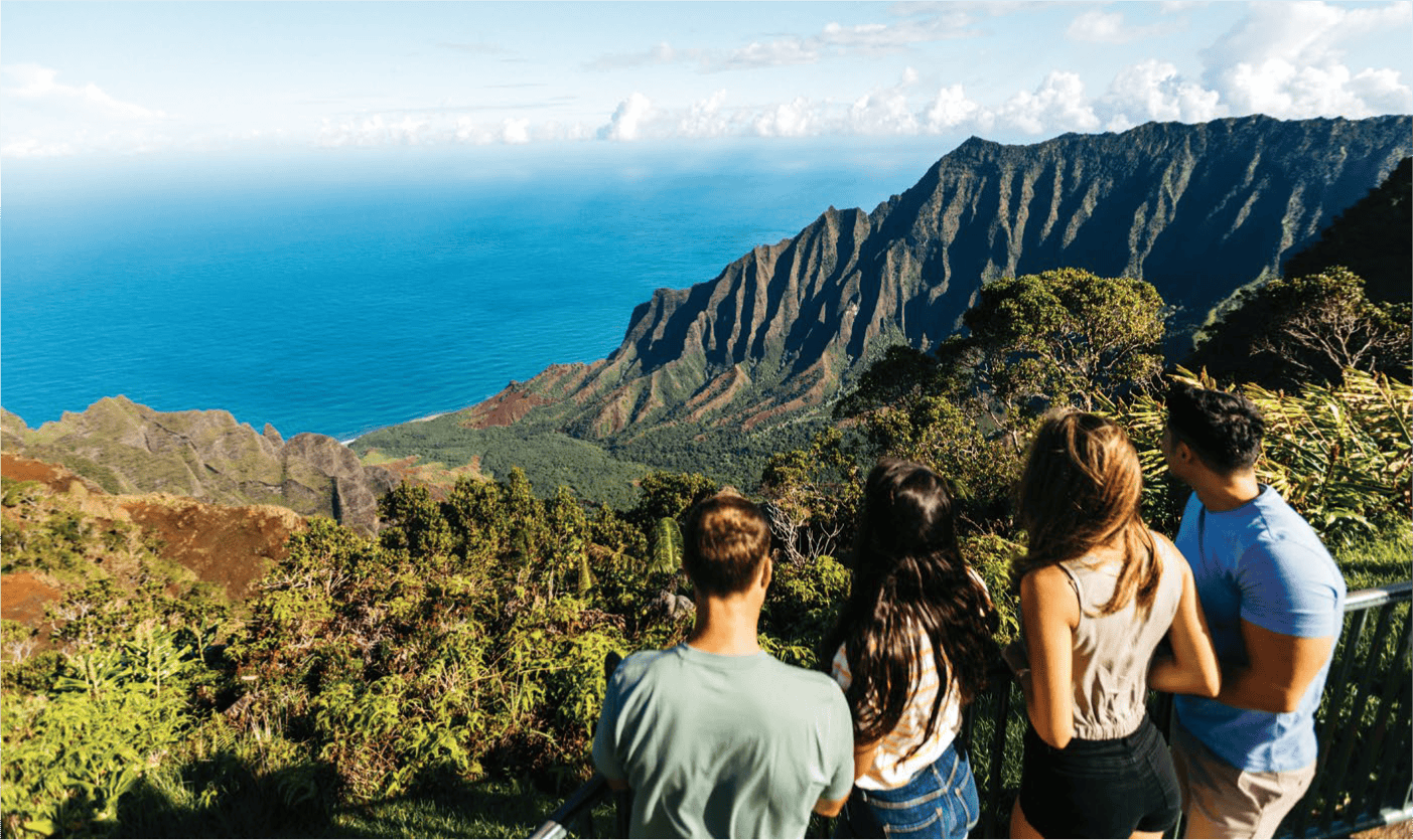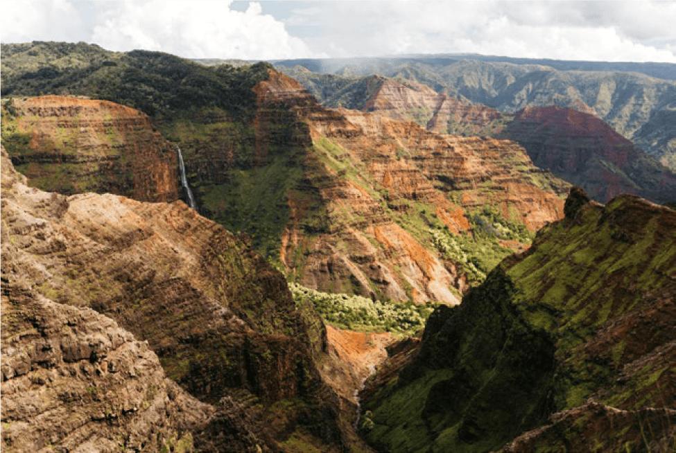 On the west side of Kaua’i you’ll find what Mark Twain called the ‘Grand Canyon of the Pacific’, Waimea Canyon, 1097 metres deep in parts, with red and green vistas punctuated by waterfalls.