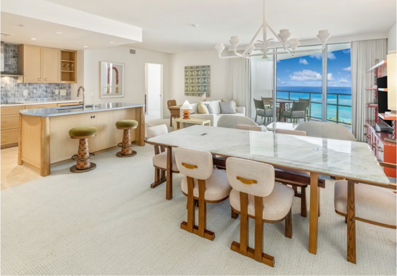At 38 storeys high, accommodations feature views of the Pacific Ocean’s emerald waters or the spectacular Honolulu skyline from the floor-to-ceiling windows or lanai (balconies). Accommodations include spacious and luxuriously appointed Superior and Deluxe Guest Rooms as well as one-, two- and three-bedroom Suites. Essentially apartments, the Suites are perfect for multi-generational families and friends travelling together, sleeping up to eight people with no extra person fee. These luxurious Suites include a fully equipped gourmet kitchen, washer/ dryer, and a wine cellar cabinet. Top class amenities include Italian marble baths with deep soaking tubs, double sinks, and a washlet. Relax and unwind after a day on the beach by the infinity pool and lanai deck with views of Oahu’s magnificent Ko’ olau Mountains. Poolside service is offered daily, featuring an assortment of finger foods, sandwiches, salads, and a line-up of handcrafted cocktails with both alcoholic and non-alcoholic selections.