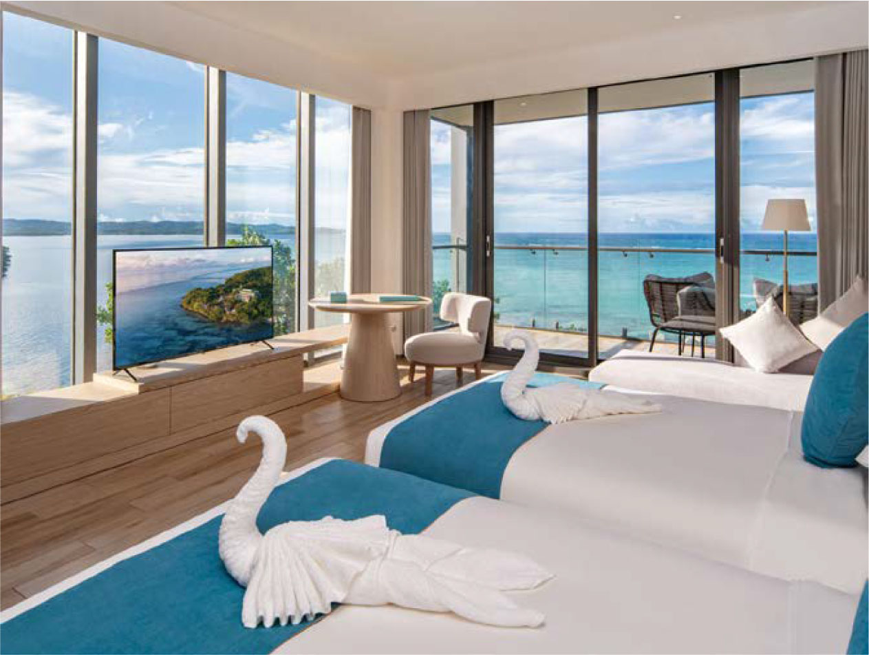 Signature experiences offered by local tour operators can be easily organised and include local welcome rituals, island craft encounters, and dining inspired by fresh regional flavors. Guests can enjoy all-day international fare at Starlight Cafe – which celebrates fresh local seafood and other island specialties, and partake of authentic Chinese cuisine at Moonshadow, where a spacious dining area plus two exclusive private rooms offer a blend of intimacy and openness. Sunset cocktails can be enjoyed under the open sky at Sky Roof Bar.