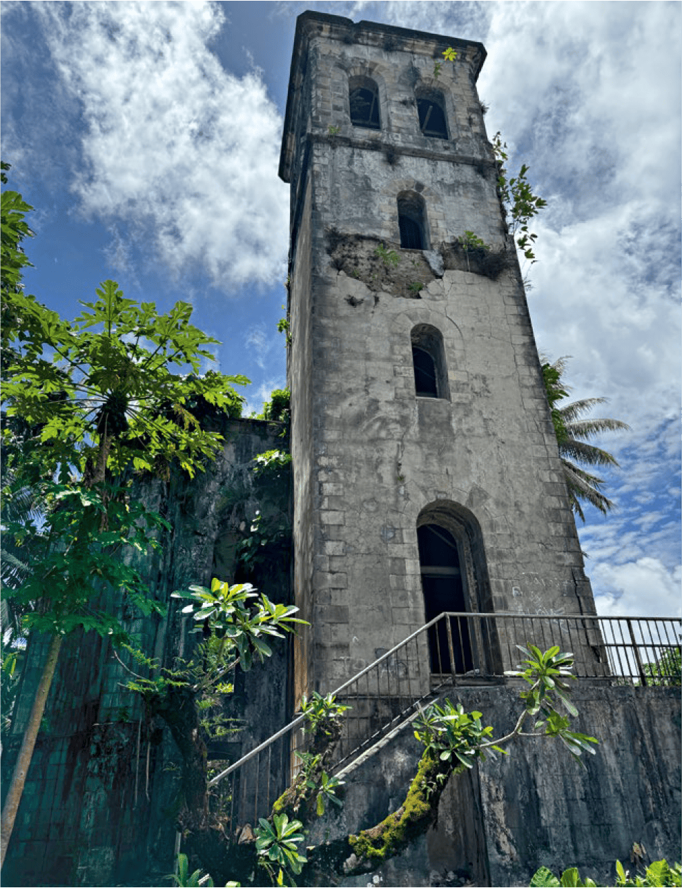 In Kolonia you can see the Spanish Wall, built in 1889 as a boundary for Fort Alphonso XII. Nearby is the Catholic Mission Bell Tower, all that remains of the old German church torn down by the Japanese during WWII.