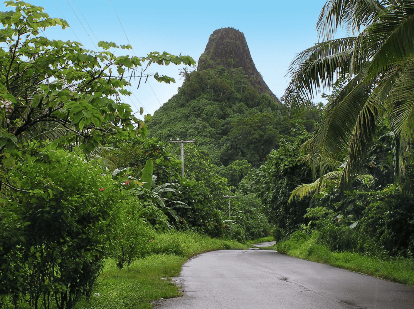 Pohnpei fits the typical South Sea island image with lush vegetation, abundant rainfall and tumbling waterfalls, and is renowned for its tropical jungles, mist-covered mountains, and some of the healthiest mangrove swamps and exotic flora in the Pacific. Situated in the northwestern Pacific, it is 880 metres high, 21 kilometres wide and shaped somewhat like a circular tent. Also known as the garden island of Micronesia, its boldest landmarks are Sokehs Rock and Nan Madol. Nan Madol is an ancient stone city built on the tidal flats of the eastern part of Pohnpei.