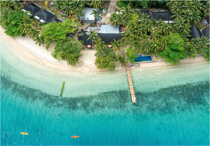 Other activities include snorkelling amongst vibrant fish life in the crystal clear waters, day sailing excursions, fishing trips and kayaking around the picturesque outer harbour. The resort provides non-motorised equipment such as kayaks, stand up paddle boards and snorkelling gear for in-house guests to use free of charge. Dining is a delightful affair, the Resort’s fully licensed restaurant Aqua Beach Bar and Restaurant is centrally located and built on the edge of the beach. Watch the stunning South Pacific sunsets while you indulge in a wide range of tropical cocktails or choose from an extensive range of international beers and wines. Enjoy a mix of international and locally inspired cuisine, featuring fresh, locally caught fish and lobster. Most dietary preferences can be catered for.