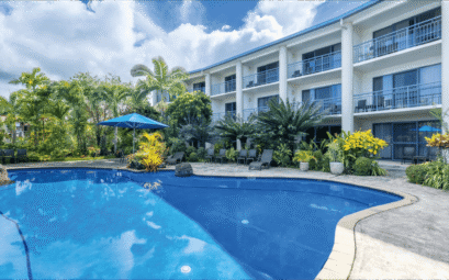 Centrally located a block to the beach in a quiet residential neighbourhood, both service apartment complexes boast residential style amenities that feature the comforts of home with fully-equipped kitchens, separate living and bedroom areas as well as on-site recreational decks.