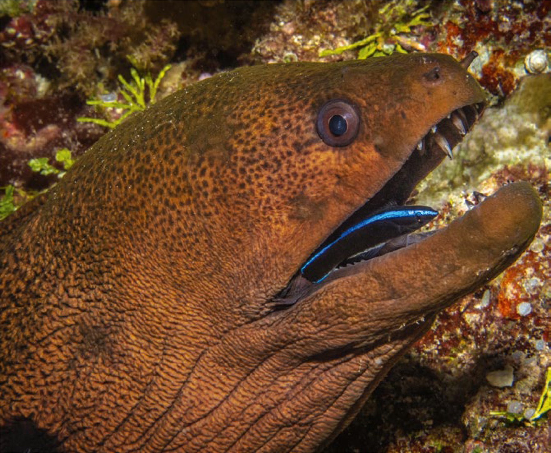 The most adventurous site is the Grotto which starts at the base of 200 stairs. After submerging 18 metres down the cavern, you then swim through the tunnel to the outside wall of the island where visibility averages 30 metres.