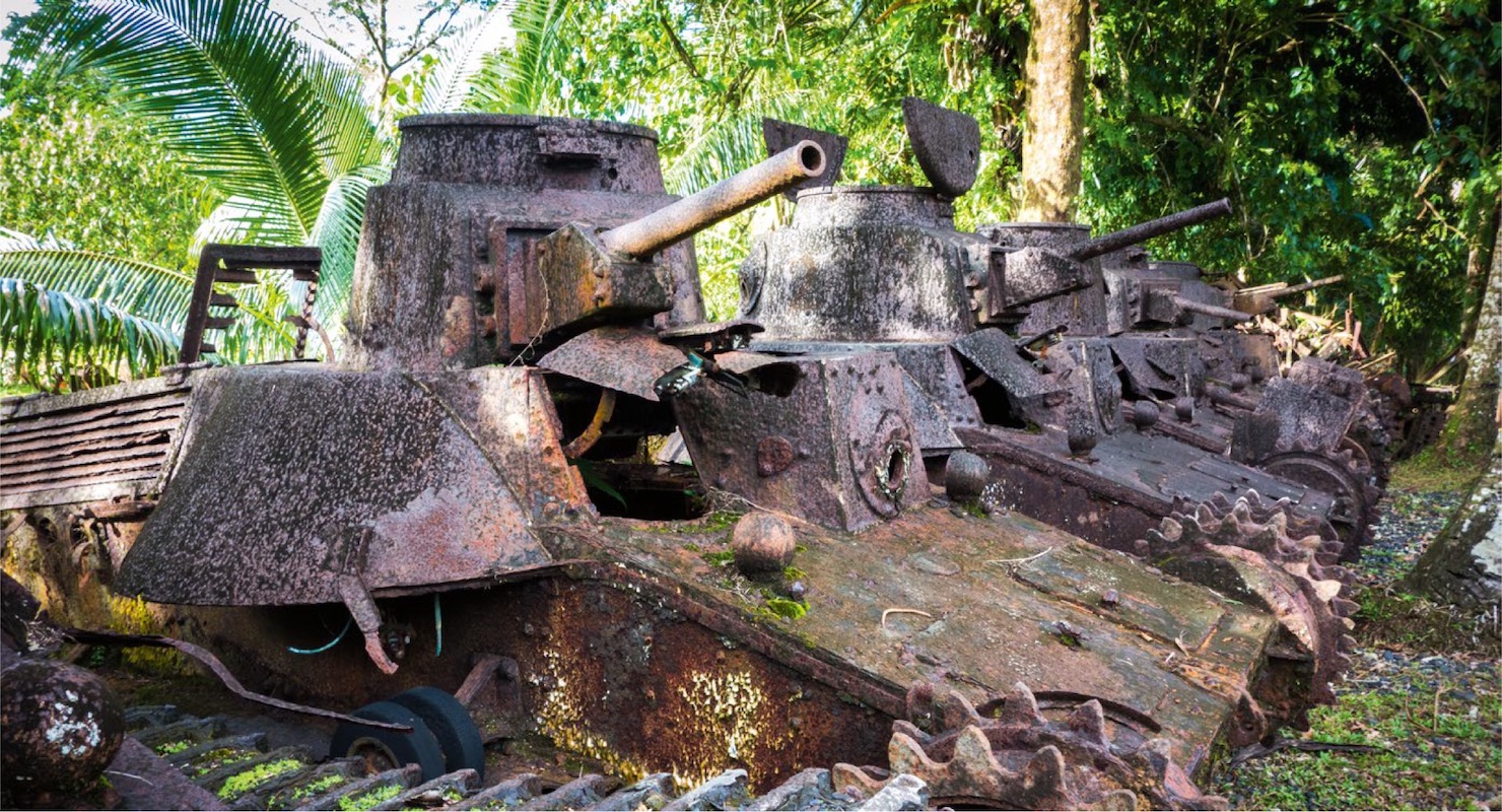 Also, the remains of a Spanish galleon, the world’s largest side paddle-wheeler, and a 230-metre passenger liner can be found layered on top of each other. You can also trace the remains of both world wars at the double wreck of the Cormoran, a WWI German Gunboat, and the Toka’s Maru, a Japanese freighter from WWII.